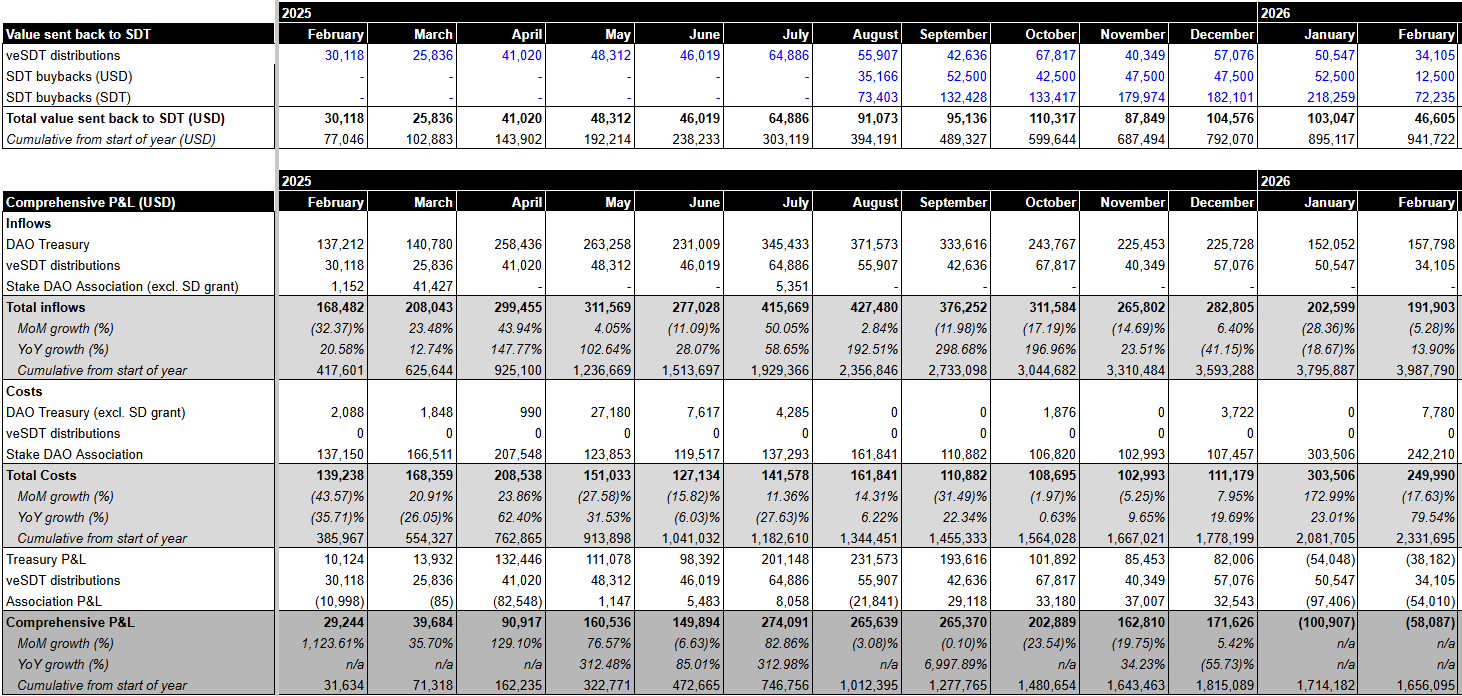 Despite the drop in share of CRV inflation at the end of the month, the performance of Stake DAO’s products stayed in line with January, leading to flattish inflows.