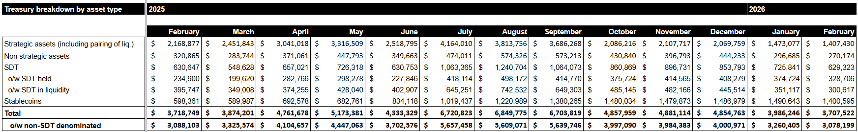Team incentivisation (spread over three months for cash flow considerations) and the expected audit of vlSDT led to a planned $54k decrease in Association treasury in February.