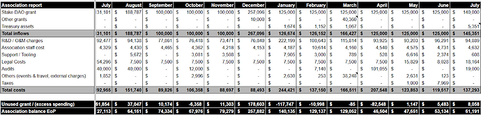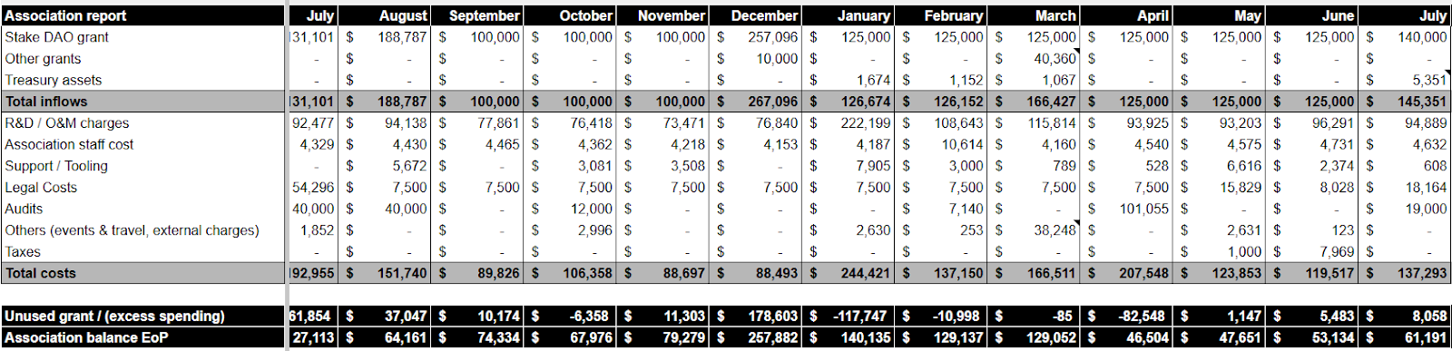 In July, the costs of the Association which included $19k of audits were fully covered by the grant. The Association sold its 5000 MORPHO grant materialising a $5,351 profit.