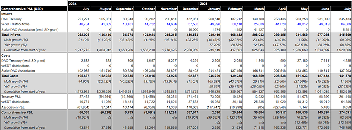 $65k of fees were distributed to veSDT this month marking an ATH. The cumulative output from the start of the year is closing in on $2m on aggregate, as July reached a near ATH performance at $415k, while costs stayed in line with the historical trend.