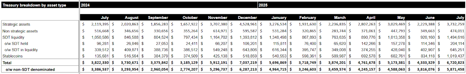 Supportive market and CRV price action, followed by strong results for the DAO, led to higher treasury on July 31st, as we passed the $1m in stable coins, and reach $1.5m in non-strategic assets.
